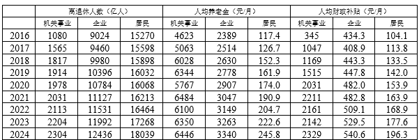 但另一方面,这个金额也不算特别夸张。2024年各级财政对企业退休职工的补贴约8100亿元(对应1.25亿退休人员),此外还有广东等地净贡献的约2500亿元中央调剂金;财政对机关事业养老基金的补贴也达6440亿元(对应约2300万退休人员)。按此口径衡量,农民养老金调到1000元/月或许偏高,但800元属于“适当”的范围——与企业退休职工获得的财政补贴及净调剂金的人均力度大体相当。