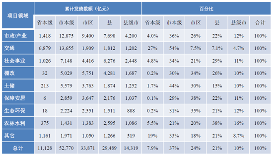 地方政府专项债券发行级次与投向领域分布(2018-2022)