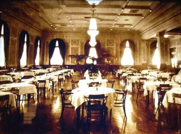 以及,当全国大多地区的人们都还不知道西餐是什么的时候,国内第一家涉外饭店,天津利顺德大饭店的菜单上就用中英双语逐条写道:一餐饭里,什锦小吃面包要配可可酒,瓷罐焖笋鸡要配法国红酒,甚至最后上的咖啡也要配白兰地。