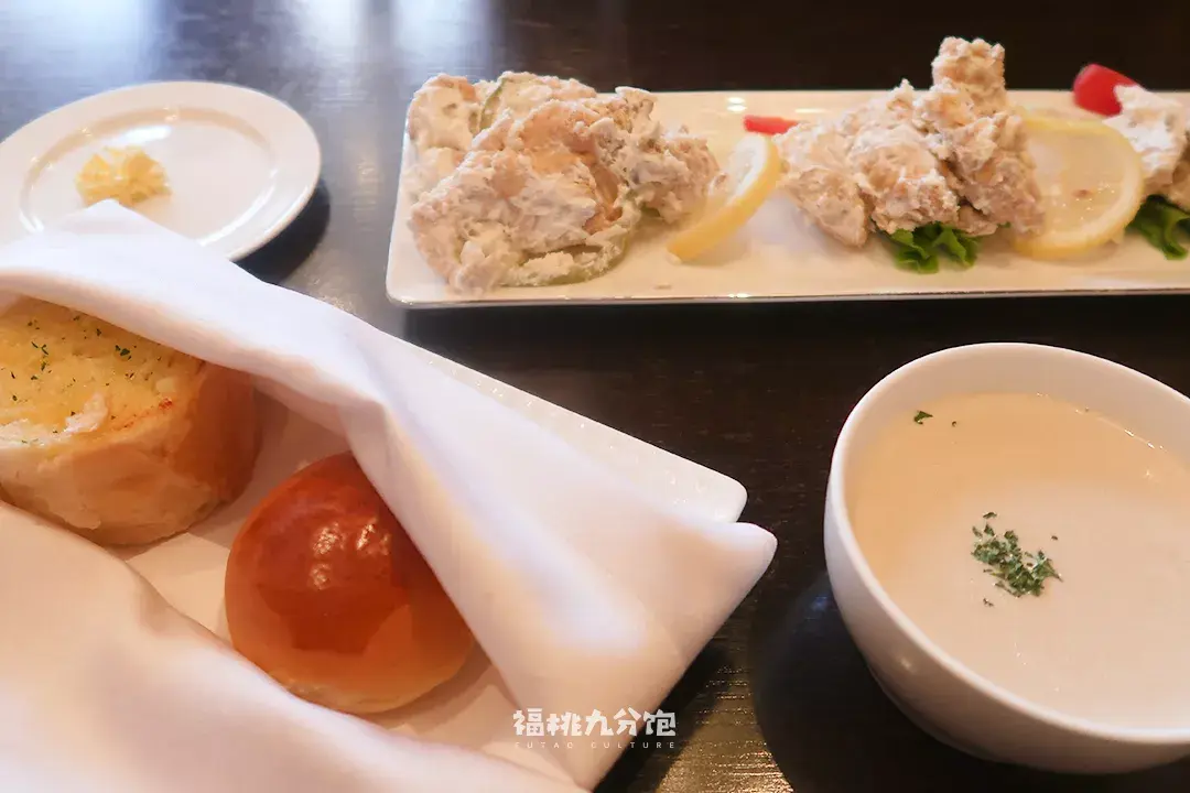 这家店价格在老西餐中偏高,仪式感比较强。每餐会附赠涂抹黄油的餐前面包。