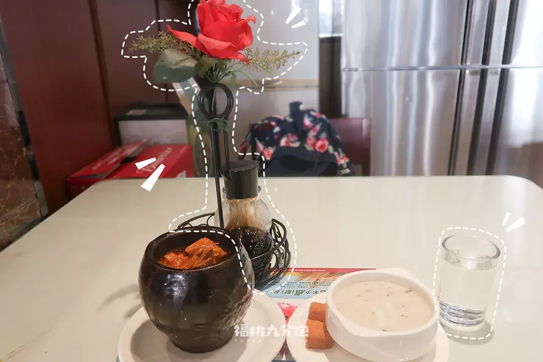 桌上有假花,服务员说天津话
